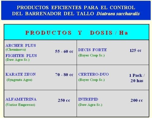 dosis a utilizar, mientras que para el control de Diatraea tanto o más