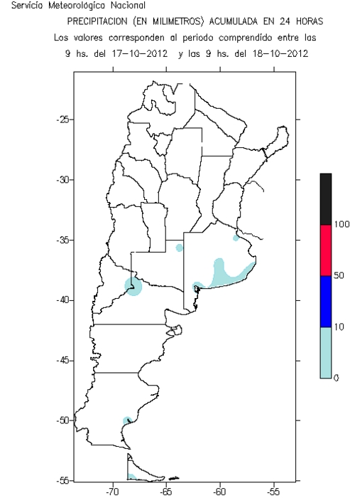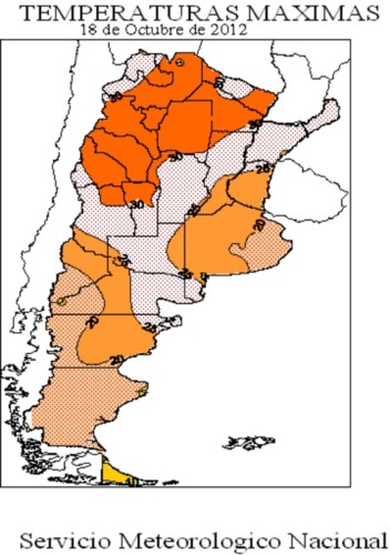 De acuerdo a lo reportado por el Instituto de Clima y Agua, INTA Castelar, el día de hoy, un sistema frontal se desplazaría hacia el este produciendo lluvias y tormentas de variada intensidad que abarcarían el norte patagónico, centro y norte del país.