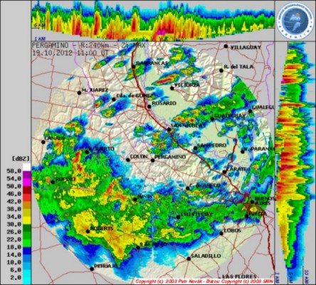 Datos de radar INTA Pergamino- Muestra donde estaría lloviendo actualmente