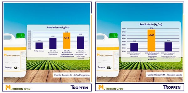 En Tropfen, desarrollamos Nutrition Grow, un bioestimulante que cuenta con un excelente balance. Se trata de una formulación equilibrada de Aminoácidos + Extractos de algas + Nutrientes acomplejados, altamente soluble en agua que permite revertir situaciones de stress, activar mecanismos de defensas y promover la movilidad del fungicida en la planta, colaborando en un mejor control de enfermedades en estas aplicaciones.