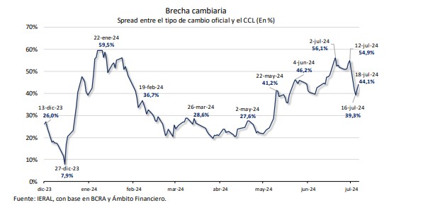 Sobre la inflación, la desaceleración ha sido muy exitosa, pero es posible que en julio tampoco se pueda perforar el umbral del 4 % mensual. La inercia es visible en la variación de precios de los servicios intensivos en mano de obra, a un ritmo del 7,3 % mensual desde mayo. Guarismo similar al de los salarios privados formales. Y, en lo que hace a la reducción de la brecha cambiaria, ese objetivo no debería apoyarse exclusivamente en intervenciones del Banco Central en el CCL y endurecimiento de la política monetaria. Es clave para el nivel de las reservas y para las expectativas que reaparezca oferta de divisas en el mercado oficial de cambios por parte de los exportadores. Los números son ajustados, porque el balance comercial de caja (cifras diferentes al devengado, que informa el INDEC), que fue positivo en torno a los 2,8 mil millones de dólares por mes en el primer semestre, apunta a un guarismo de entre 700 y 800 millones/mes para este segundo semestre.
