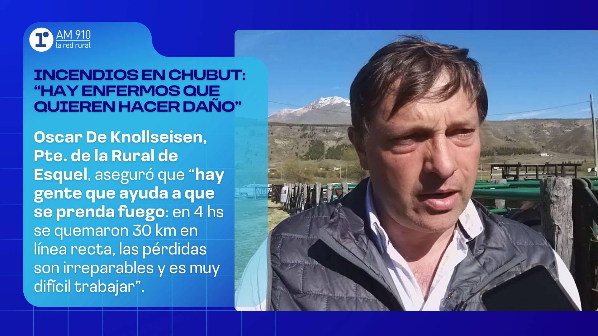 Chubut: Tenemos el fuego dentro del campo, un frente de 3.000 metros que avanza
