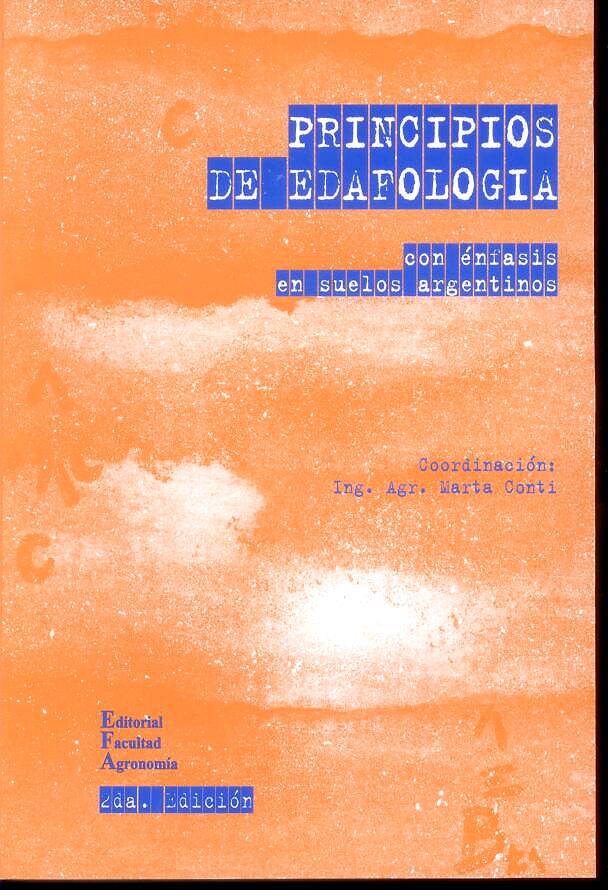 Descripción: Introducción a la edafología. Constituyentes del suelo. Rocas. Minerales. Textura. Materia orgánica del suelo. Organismos del suelo. Formación y desarrollo de suelos. Meteorización. Factores formadores de suelos. Estructura. Densidad de suelos. Color, consistencia, moteados y concreciones. Perfil del suelo. Propiedades físico-químicas del suelo. Coloides del suelo. Intercambio de iones. Reacción del suelo. Agua del suelo. Agua del suelo. Ciclos biogeoquímicos de elementos. Nitrógeno del suelo. Fósforo. Potacio del suelo. Azufre. Sisitemática de suelos. Procesos pedogenéticos. Clasificación de suelos. Calidad y salud de suelos. Suelos argentinos. Cartografía de suelos.