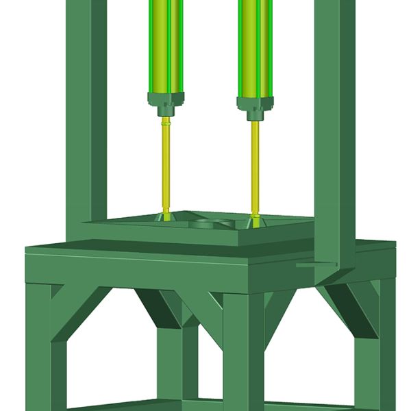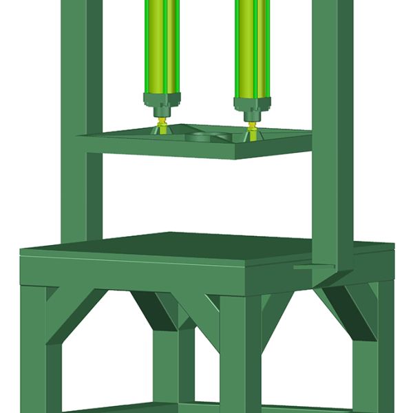 Esta prensa está diseñada para operar con una fuerza de 300 Kilogramos, generados por la acción de dos cilindros neumáticos.