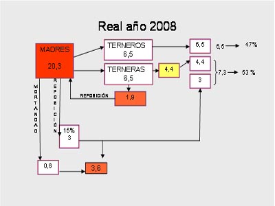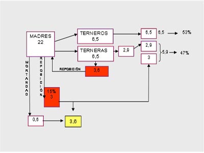 De esta manera dejaríamos la categoría de futuras madres (Vaquillonas y terneras) para cubrir la reposición –ese 20 % de vacas de rechazo- y el sobrante nos daría la posibilidad de crecimiento en madres.