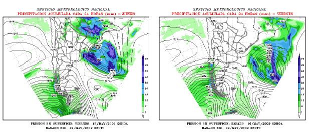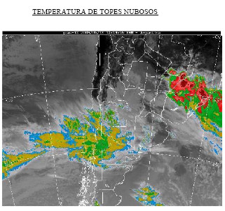 CENTRO Y ESTE DE SALTA, CENTRO Y ESTE DE JUJUY, NOROESTE DE CHACO Y OESTE DE FORMOSA NUBOSIDAD VARIABLE. TIEMPO INESTABLE, CON PROBABILIDAD DE LLUVIAS POR LA TARDE. VIENTOS MODERADOS DEL SECTOR SUR. TEMPERATURA MÍNIMA ENTRE 14ºC Y 16ºC. TEMPERATURA MÁXIMA ENTRE 27ºC Y 29ºC. TUCUMAN, SANTIAGO DEL ESTERO Y NORTE DE CORDOBA CIELO NUBLADO. TIEMPO INESTABLE CON PROBABILIDAD DE LLUVIAS. . VIENTOS MODERADOS DEL SECTOR SUR. TEMPERATURA MÍNIMA ENTRE 12ºC Y 16ºC. TEMPERATURA MÁXIMA ENTRE 18ºC Y 23ºC. MISIONES, CORRIENTES, CENTRO Y ESTE DE CHACO, ESTE DE FORMOSA Y NORTE DE SANTA FE CIELO NUBLADO. PROBABILIDAD DE LLUVIAS Y TORMENTAS. VIENTOS LEVES DEL SECTOR NORTE, CAMBIANDO A MODERADOS DEL SECTOR SUR. TEMPERATURA MÍNIMA ENTRE 17ºC Y 20ºC. TEMPERATURA MÁXIMA ENTRE 25ºC Y 30ºC. CENTRO Y SUR DE SANTA FE Y ENTRE RÍOS CIELO NUBLADO. PROBABILIDAD DE LLUVIAS Y TORMENTAS, LUEGO TIEMPO INESTABLE CON PROBABILIDAD DE PRECIPITACIONES. VIENTOS MODERADOS A REGULARES DEL SUDESTE, ROTANDO AL SUR, CON RÁFAGAS. TEMPERATURA MÍNIMA ENTRE 12ºC Y15ºC. TEMPERATURA MÁXIMA ENTRE 18ºC Y 23ºC. SUR DE CÓRDOBA Y SAN LUIS Y NORESTE DE LA PAMPA CIELO NUBLADO. TIEMPO INESTABLE CON PROBABILIDAD DE PRECIPITACIONES. VIENTOS MODERADOS DEL SUDESTE, ROTANDO AL SECTOR SUR. TEMPERATURA MÍNIMA ENTRE 8ºC Y 11ºC. TEMPERATURA MÁXIMA ENTRE 11ºC Y 15ºC. NORESTE DE BUENOS AIRES CIELO PARCIALMENTE NUBLADO O NUBLADO. PROBABILIDAD DE LLUVIAS Y ALGUNAS TORMENTAS, LUEGO LLUVIAS Y CHAPARRONES. MARCADO DESCENSO DE TEMPERATURA. VIENTOS MODERADOS DEL SECTOR ESTE, CAMBIANDO A MODERADOS A REGULARES DEL SECTOR SUR, CON RÁFAGAS. TEMPERATURA MÍNIMA ENTRE 9ºC Y 12ºC. TEMPERATURA MÁXIMA ENTRE 15ºC Y 17ºC. NOROESTE, CENTRO Y SUDESTE DE BUENOS AIRES CIELO NUBLADO. TIEMPO INESTABLE CON PROBABILIDAD DE LLUVIAS. VIENTOS MODERADOS A REGULARES DEL SECTOR ESTE, CAMBIANDO A REGULARES DEL SECTOR SUR, CON RÁFAGAS. TEMPERATURA MÍNIMA ENTRE 4ºC Y 11ºC. TEMPERATURA MÁXIMA ENTRE 9ºC Y 15ºC. SUDOESTE DE BUENOS AIRES, CENTRO Y SUR DE LA PAMPA CIELO NUBLADO. TIEMPO INESTABLE CON PROBABILIDAD DE LLUVIAS. MEJORANDO CON NUBOSIDAD VARIABLE HACIA LA NOCHE. VIENTOS MODERADOS A REGULARES DEL SECTOR ESTE, ROTANDO AL SUDESTE. TEMPERATURA MÍNIMA ENTRE 5ºC Y 8ºC. TEMPERATURA MÁXIMA ENTRE 8ºC Y 13ºC.