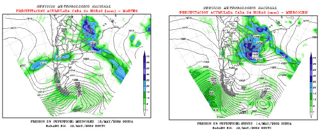 CENTRO Y ESTE DE SALTA, CENTRO Y ESTE DE JUJUY, TUCUMÁN, NOROESTE DE CHACO, OESTE DE FORMOSA, NORTE Y SUDOESTE DE SANTIAGO DEL ESTERO CIELO NUBLADO. TIEMPO INESTABLE CON PROBABILIDAD DE PRECIPITACIONES DURANTE LA MAÑANA, LUEGO MEJORANDO CON NUBOSIDAD VARIABLE. VIENTOS LEVES DEL SECTOR SUR, ROTANDO AL SUDESTE. TEMPERATURA MÍNIMA ENTRE 10ºC Y13ºC. TEMPERATURA MÁXIMA ENTRE 15ºC Y 19ºC. MISIONES, NORTE DE CORRIENTES, ESTE DE FORMOSA, CENTRO Y ESTE DE CHACO CIELO NUBLADO. PROBABILIDAD DE LLUVIAS Y TORMENTAS. VIENTOS MODERADOS A LEVES DEL SECTOR SUR. TEMPERATURA MÍNIMA ENTRE 10ºC Y 13ºC. TEMPERATURA MÁXIMA ENTRE 21ºC Y 23ºC. SUR DE CORRIENTES, NORTE Y CENTRO DE SANTA FE Y ENTRE RÍOS NUBOSIDAD VARIABLE. TIEMPO INESTABLE CON PROBABILIDAD DE PRECIPITACIONES DURANTE LA MAÑANA, LUEGO MEJORANDO. VIENTOS REGULARES A MODERADOS DEL SECTOR SUR. TEMPERATURA MÍNIMA ENTRE 7ºC Y 9ºC. TEMPERATURA MÁXIMA ENTRE 15ºC Y 18ºC. NORTE Y ESTE DE CÓRDOBA, SUDESTE DE SANTIAGO DEL ESTERO Y SUR DE SANTA FE NUBOSIDAD VARIABLE. TIEMPO INESTABLE DURANTE LA MAÑANA. VIENTOS MODERADOS A LEVES DEL SECTOR SUR, CAMBIANDO A LEVES DE DIRECCIONES VARIABLES. TEMPERATURA MÍNIMA ENTRE 5ºC Y 9ºC. TEMPERATURA MÁXIMA ENTRE 14ºC Y 16ºC. NORESTE DE BUENOS AIRES CIELO NUBLADO. PROBABILIDAD DE LLUVIAS. MEJORANDO, CON NUBOSIDAD VARIABLE HACIA LA NOCHE. VIENTOS REGULARES A MODERADOS DEL SECTOR SUR, CON RÁFAGAS. TEMPERATURA MÍNIMA ENTRE 6ºC Y 9ºC. TEMPERATURA MÁXIMA ENTRE 13ºC Y 16ºC. CENTRO Y OESTE DE BUENOS AIRES, LA PAMPA, SUDOESTE DE CORDOBA Y SAN LUIS PROBABILIDAD DE HELADAS. NUBOSIDAD VARIABLE. VIENTOS LEVES DEL SECTOR SUR, LUEGO DE DIRECCIONES VARIABLES. TEMPERATURA MÍNIMA ENTRE 1ºC Y 5ºC. TEMPERATURA MÁXIMA ENTRE 12ºC Y 14ºC. SUDESTE DE BUENOS AIRES NUBOSIDAD VARIABLE. TIEMPO INESTABLE CON PROBABILIDAD DE PRECIPITACIONES AISLADAS DURANTE LA MAÑANA, LUEGO MEJORANDO. VIENTOS MODERADOS DEL SECTOR SUR. TEMPERATURA MÍNIMA ENTRE 6ºC Y 10ºC. TEMPERATURA MÁXIMA ENTRE 14ºC Y 16ºC.