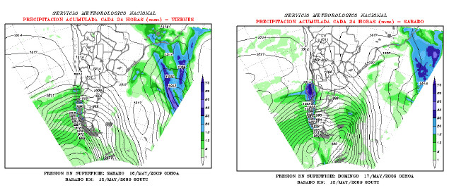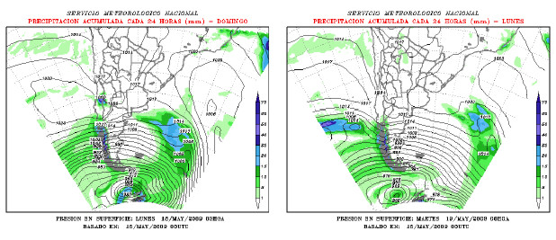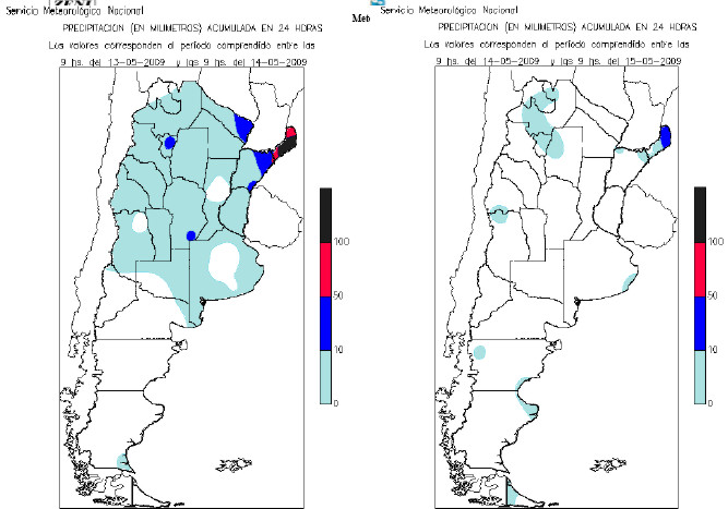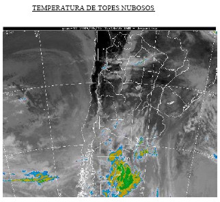 CENTRO Y ESTE DE SALTA, ESTE DE JUJUY, TUCUMÁN, NORTE DE SANTIAGO DEL ESTERO, OESTE DE CHACO Y OESTE DE FORMOSA CIELO PARCIALMENTE NUBLADO O NUBLADO. TIEMPO INESTABLE CON PROBABILIDAD DE PRECIPITACIONES. VIENTOS LEVES DE SECTOR ESTE, ROTANDO AL SUDESTE. TEMPERATURA MÍNIMA ENTRE 10ºC Y 15ºC. TEMPERATURA MÁXIMA ENTRE 20ºC Y 22ºC. SUR DE SANTIAGO DEL ESTERO Y NORTE DE SANTA FE CIELO ALGO NUBLADO. VIENTOS LEVES DEL SECTOR ESTE. TEMP. MÍNIMA ENTRE 11ºC Y 13ºC. TEMP. MÁXIMA ENTRE 20ºC Y 23ºC. MISIONES, CORRIENTES, ESTE DE CHACO Y ESTE DE FORMOSA CIELO ALGO NUBLADO. VIENTOS LEVES DEL NORESTE, ROTANDO AL ESTE. TEMPERATURA MÍNIMA ENTRE 10ºC Y 13ºC. TEMPERATURA MÁXIMA ENTRE 25ºC Y 28ºC. CENTRO Y SUR DE SANTA FE, ENTRE RIOS Y ESTE DE CORDOBA CIELO NUBLADO, LUEGO NUBOSIDAD VARIABLE. VIENTOS LEVES DEL SECTOR ESTE. TEMPERATURA MÍNIMA ENTRE 9ºC Y 12ºC. TEMPERATURA MÁXIMA ENTRE 20ºC Y 22ºC. NORESTE DE BUENOS AIRES CIELO PARCIALMENTE NUBLADO O NUBLADO. VIENTOS LEVES DEL SECTOR SUR, ROTANDO AL SUDESTE. TEMPERATURA MÍNIMA ENTRE 7ºC Y 10ºC. TEMPERATURA MÁXIMA ENTRE 17ºC Y 19ºC. OESTE DE CORDOBA Y SAN LUIS NUBOSIDAD VARIABLE, LUEGO CIELO ALGO NUBLADO. VIENTOS LEVES DE DIRECCIONES VARIABLES, LUEGO DEL NORESTE. TEMPERATURA MÍNIMA ENTRE 4ºC Y9ºC. TEMPERATURA MÁXIMA ENTRE 17ºC Y 20ºC. CENTRO Y NOROESTE DE BUENOS AIRES, CENTRO Y NORTE DE LA PAMPA CIELO NUBLADO. VIENTOS LEVES DE DIRECCIONES VARIABLES, LUEGO DEL SECTOR NORTE. TEMPERATURA MÍNIMA ENTRE 5ºC Y 8ºC. TEMPERATURA MÁXIMA ENTRE 16ºC Y 20ºC. SUDESTE DE BUENOS AIRES CIELO ALGO NUBLADO. VIENTOS LEVES DE DIRECCIONES VARIABLES, LUEGO DEL SECTOR NORTE. TEMPERATURA MÍNIMA ENTRE 5ºC Y 10ºC. TEMPERATURA MÁXIMA ENTRE 15ºC Y 18ºC. SUDOESTE DE BUENOS AIRES Y SUR DE LA PAMPA PROBABILIDAD DE HELADAS. CIELO ALGO O PARCIALMENTE NUBLADO. VIENTOS LEVES DE DIRECCIONES VARIABLES, PREVALECIENTES DEL SECTOR OESTE. TEMPERATURA MÍNIMA ENTRE 0ºC Y 3ºC. TEMPERATURA MÁXIMA ENTRE 14ºC Y 17ºC.
