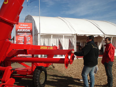En la Estancia La Berta, en la localidad cordobesa de Ballesteros, Akron presentó sus nuevos fierros durante la realización de Agroactiva 2009. Al mercado de maquinarias –tradicionalmente conocido por las tolvas autodescargables- se le suman dos novedosos productos: la extractora de granos secos “AKRON EXG 300”, autotrailer, con 280 ton/h de capacidad de carga; y los cuadriciclos y utilitarios “KYMCO”, de los cuales Akron es representante exclusivo en Argentina para el agro.
