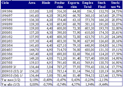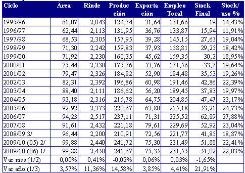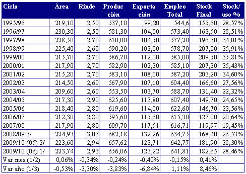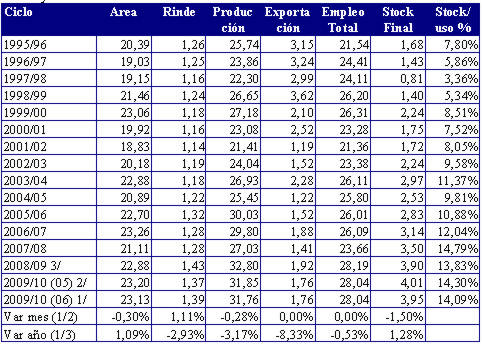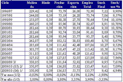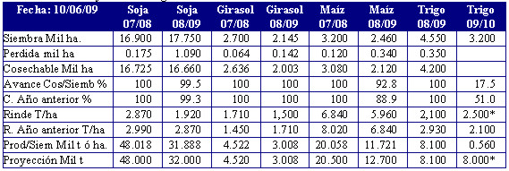 Fuente: Elaborado a partir de Bolsa Cereales 10/06/2009) *Proyectado
