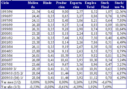 en 5,5 millones que por primera vez en varias décadas, sería menor a la molienda