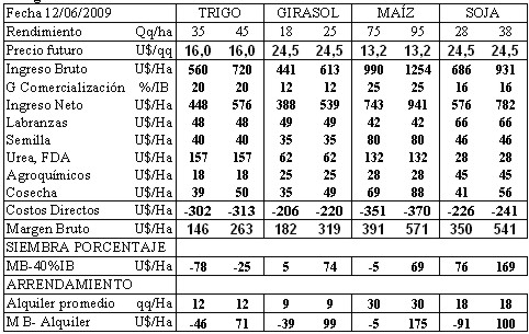 Fuente: Bolsa Cereales de Buenos Aires 12/06/2009.