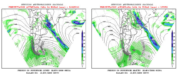 ESTE DE SALTA, ESTE DE JUJUY ALGO A PARCIALMENTE NUBLADO. EN SALTA SE PREVE BANCOS DE NIEBLA INTENSOS CON IMPORTANTE REDUCCIÓN DE LA VISIBILIDAD, DISMINUYENDO SU INTENSIDAD DURANTE EL DÍA. VIENTOS LEVES DEL NORESTE. TEMPERATURA MÍNIMA ENTRE 10ºC Y 14ºC. TEMPERATURA MÁXIMA ENTRE 23ºC Y 25ºC. TUCUMÁN, OESTE DE SANTIAGO DEL ESTERO, NOROESTE DE CÓRDOBA NUBOSIDAD EN AUMENTO. INESTABLE POR LA TARDE O NOCHE. VIENTOS LEVES DEL SECTOR NORTE ROTANDO AL SECTOR SUR. TEMPERATURA MÍNIMA ENTRE 12ºC Y 17ºC. TEMPERATURA MÁXIMA ENTRE 20ºC Y 24ºC. ESTE DE SANTIAGO DEL ESTERO, CENTRO Y OESTE DE FORMOSA, CHACO, NORTE DE SANTA FE Y CORRIENTES NUBOSIDAD VARIABLE. PROBABILIDAD DE LLOVIZNAS AISLADAS. VIENTOS MODERADOS DEL SECTOR NORTE. TEMPERATURA MÍNIMA 18ºC. TEMPERATURA MÁXIMA ENTRE 20ºC Y 24ºC. EXTREMO ESTE DE FORMOSA Y MISIONES CIELO ALGO A PARCIALMENTE NUBLADO. VIENTOS LEVES DEL NORESTE. TEMPERATURA MÍNIMA ENTRE 11ºC Y 15ºC. TEMPERATURA MÁXIMA ENTRE 20ºC Y 22ºC. NORESTE DE CÓRDOBA, CENTRO Y SUR DE SANTA FE, ENTRE RÍOS Y NORTE DE BUENOS AIRES CIELO CON NUBOSIDAD VARIABLE O NUBLADO. PROBABILIDAD DE LLOVIZNAS. EN CÓRDOBA, SANTA FE Y BUENOS AIRES SE PREVE BANCOS DE NIEBLA INTENSOS CON IMPORTANTE REDUCCIÓN DE LA VISIBILIDAD, DISMINUYENDO SU INTENSIDAD DURANTE EL DÍA. EN CÓRDOBA Y BUENOS AIRES VIENTOS LEVES DEL SECTOR NORTE CAMBIANDO A LEVES A MODERADOS DEL SECTOR SUR, EN EL RESTO DE LA REGIÓN LEVES DEL SECTOR NORTE. TEMPERATURA MÍNIMA ENTRE 16ºC Y 18ºC. TEMPERATURA MÁXIMA ENTRE 19ºC Y 21ºC. NORTE DE SAN LUIS NUBOSIDAD VARIABLE. VIENTOS LEVES DEL SECTOR SUR. TEMPERATURA MÍNIMA 10ºC. TEMPERATURA MÁXIMA ENTRE 15ºC Y 17ºC. SUDESTE DE SAN LUIS, SUR DE CÓRDOBA, NORTE DE LA PAMPA, EXTREMO SUR DE SANTA FE, NOROESTE Y CENTRO DE BUENOS AIRES CIELO NUBLADO, LUEGO CON NUBOSIDAD VARIABLE. POR LA MAÑANA PROBABILIDAD DE LLUVIAS Y LLOVIZNAS. EN CÓRDOBA, SANTA FE Y BUENOS AIRES SE PREVE BANCOS DE NIEBLA INTENSOS CON IMPORTANTE REDUCCIÓN DE LA VISIBILIDAD, DISMINUYENDO SU INTENSIDAD DURANTE EL DÍA. MEJORANDO A PARTIR DE LA TARDE. EN BUENOS AIRES VIENTOS LEVES DEL SECTOR NORTE, ROTANDO AL SECTOR SUR; EN EL RESTO DE LA REGIÓN LEVES DEL SECTOR SUR. TEMPERATURA MÍNIMA ENTRE 8ºC Y 12ºC. TEMPERATURA MÁXIMA ENTRE 13ºC Y 18ºC. EXTREMO SUR DE ENTRE RÍOS Y NORESTE DE BUENOS AIRES CIELO PARCIALMENTE NULADO A NUBLADO. PROBABILIDAD DE LLUVIAS Y LLOVIZNAS. VIENTOS LEVES DEL SECTOR NORTE CAMBIANDO A MODERADOS DEL SECTOR SUR. TEMPERATURA EN DESCENSO. TEMPERATURA MÍNIMA ENTRE 12ºC Y 15ºC. TEMPERATURA MÁXIMA 17ºC. SUDESTE DE BUENOS AIRES CIELO NUBLADO, LUEGO CON NUBOSIDAD VARIABLE. POR LA MAÑANA SE PREVE BANCOS DE NIEBLA INTENSOS CON IMPORTANTE REDUCCIÓN DE LA VISIBILIDAD, DISMINUYENDO SU INTENSIDAD DURANTE EL DÍA, PROBABILIDAD DE LLUVIAS Y LLOVIZNAS. MEJORANDO A PARTIR DE LA TARDE. VIENTOS LEVES DEL SECTOR NORTE ROTANDO AL SECOTR SUR. TEMPERATURA MÍNIMA ENTRE 9ºC Y 11ºC. TEMPERATURA MÁXIMA 16ºC. CENTRO OESTE Y SUDOESTE DE SAN LUIS NUBOSIDAD VARIABLE O NUBLADO. INESTABLE POR LA MAÑANA. PROBABILIDAD DE LLOVIZNAS POR LA TARDE O NOCHE. VIENTOS LEVES DEL SECTOR SUR. TEMPERATURA MÍNIMA 10ºC. TEMPERATURA MÁXIMA 15ºC. OESTE, CENTRO Y SUR DE LA PAMPA, SIDOESTE Y EXTREMO SUR DE BUENOS AIRES NUBLADO, LUEGO NUBOSIDAD VARIABLE. INESTABLE POR LA MAÑANA. MEJORANDO A PARTIR DE LA TARDE. EN LA PAMPA VIENTOS LEVES DEL SECTOR SUR, EN EL RESTO DE LA REGIÓN, LEVES DLE SECTOR OESTE. TEMPERATURA MÍNIMA ENTRE 5ºC Y 7ºC. TEMPERATURA MÁXIMA 12ºC.