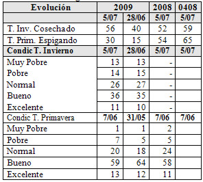 invierno esta cosechado un 56%. La condición de bueno a excelente de los