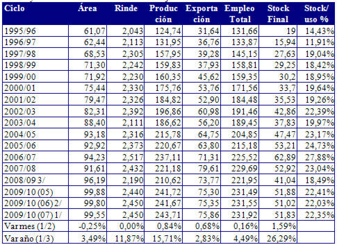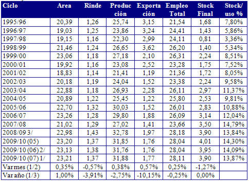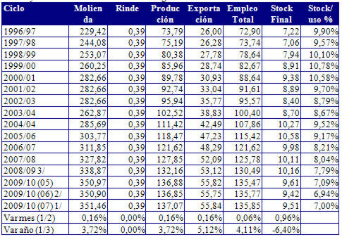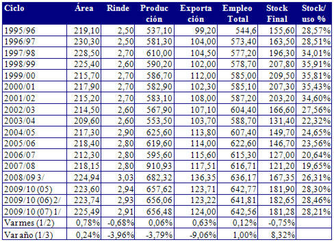 No se conocen estimaciones de siembra para 2009/10, pero a mediados de julio se