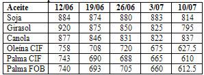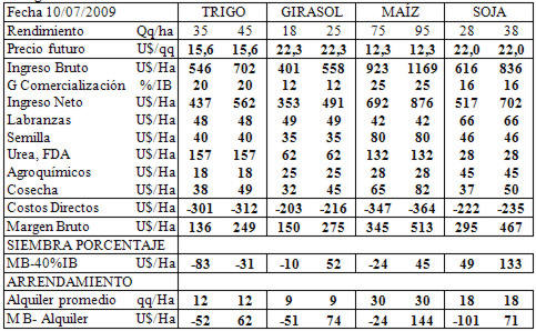 Fuente: Bolsa Cereales de Buenos Aires 10/07/2009.