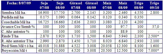 Fuente: Elaborado a partir de Bolsa Cereales 8/07/2009) *Proyectado