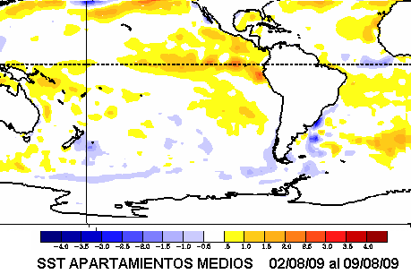 La mayoría de los modelos numéricos de pronóstico sugieren que El Niño continuará fortaleciéndose, hasta alcanzar un máximo allá por el mes de diciembre. Las discrepancias en los resultados proyectados son más importantes a partir de entonces, fundamentalmente en cuanto a la continuidad de este episodio o su evolución hacia un estado neutral. Por el momento, se presenta un consenso en cuanto a la intensidad del evento, el cual a lo sumo será moderado (apartamiento térmico máximo del orden de 1.5°C por encima de lo normal). En cuanto a este indicador, la situación es similar a la del verano 02/03.