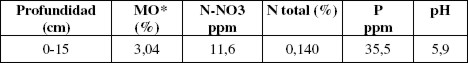 El ensayo se instaló sobre un suelo Argiudol típico de la serie Rafaela y el resultado del análisis químico del suelo para los parámetros más importantes se detalla en Cuadro 2.