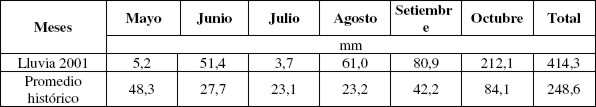 Cuadro 3. Lluvias ocurridas desde el mes de mayo hasta octubre inclusive y diferencia con el promedio histórico