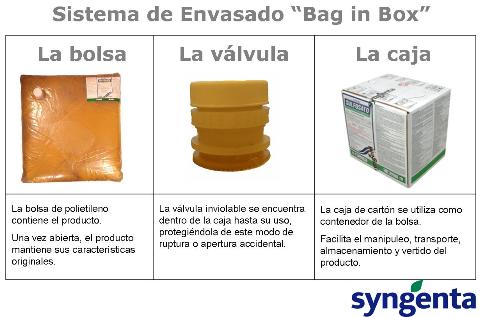 Touchdown Hi Tech se presentará en el innovador sistema de envases "Bag in Box" de 15 litros, desarrollado por Syngenta. El nuevo envase ofrece ventajas desde el punto de vista ambiental, reduciendo un 80% el uso de plásticos en la confección de envases, minimizando la emisión de CO2 y facilitando la disposición del envase vacío en el campo.