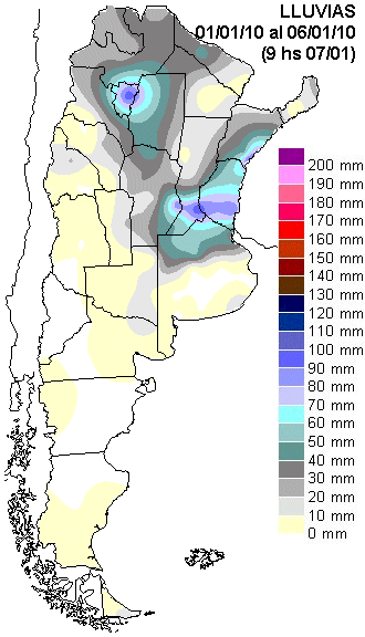 En el mapa se observan lluvias más modestas al sur de la cuenca del Salado y el NEA, observándose una buena provisión en el NOA.