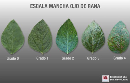- Mancha ojo de rana (agente causal: Cercospora sojina)