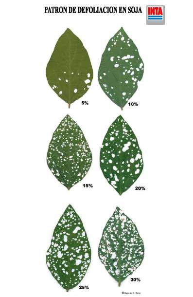 Es sabido que se debe cuantificar adecuadamente la presencia de la plaga en cada lote a través del uso del paño vertical, a fin de conocer la densidad de larvas chicas y mayores de 1,5 cm por metro de hilera. La cantidad de larvas promedio debe compararse con los niveles de acción disponibles, y que se incluyen en el adjunto (Tabla de umbrales para defoliadoras en soja).