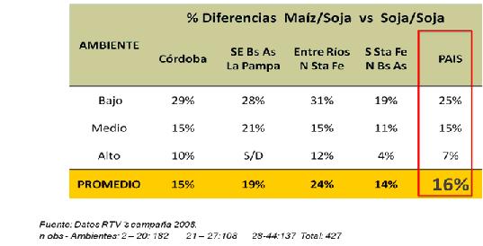 El maíz tiene beneficios sobre los cultivos sucesores, tales como la soja. El equipo de desarrollo de Monsanto demostró que estos beneficios sobre la soja van incrementándose a medida que el ambiente tiene menores potenciales de rinde. Los resultados dan un promedio nacional excepcional de 16%.