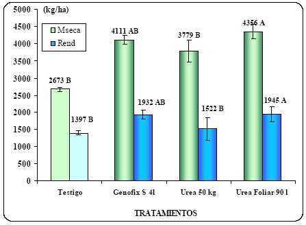 bandera incrementó la producción de biomasa y los rendimientos, cuando fue