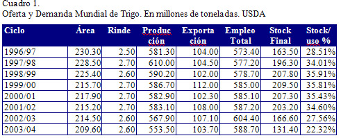 Las proyecciones del trigo temporada 2010/11. Las mismas confirmaron una retracción de la oferta mundial y de los EEUU, pero en función del comercio y del uso se tienden a mantener los abultados stocks.
