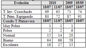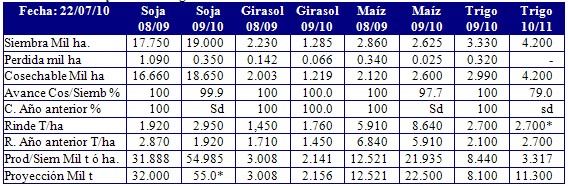 Fuente: Elaborado a partir de Bolsa Cereales 22/07/2010) *Proyectado