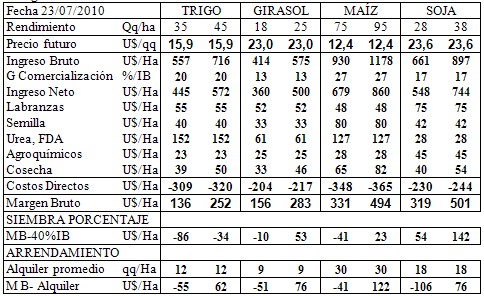 la rentabilidad del cultivo se proyectó con márgenes brutos de 156 y 283 u$s/ha.
