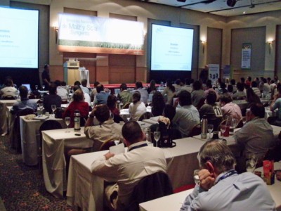 Minutos más tarde el Ing. Marcos Bradley, se refirió a las semillas de soja SPS y explicó las posibilidades de rindes y tolerancia a enfermedades de estas semillas.