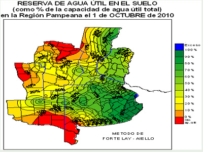 Considerar en sequía absoluta las áreas con 0% de agua útil, en sequía condicional las áreas entre 0 y 50% de agua útil y en humedad óptima las áreas entre 50 y 100% de agua útil.