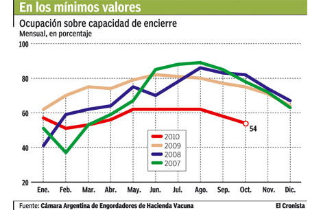 Con esa expectativa de suba trabajaron los feedlots durante este año. Y no les fue mal. Quienes vendan este mes, por caso, incorporarán al precio el último incremento, de hasta 25% en el último trimestre. Los cimbronazos de precios desde fines de 2009 beneficiaron a quienes tuvieron sentido de la oportunidad, aunque ahora en el negocio están más cautelosos. Y esa cautela se refleja en menos ocupación.