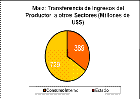 Los cálculos se realizaron comparando los precios FOB de mercado, los precios oficiales, la capacidad teórica de pago y los precios futuros de los granos. La transferencia total para la campaña 2010/11 seria de más de 1.695 millones de dólares y está compuesta por los 577 millones de dólares que se transfieren por Trigo y 1.118 millones de dólares de Maíz en concepto de los descuentos que sufren los productores por parte de la demanda de estos cereales, industria y exportación. Al no existir competencia en la demanda, los exportadores compran con el mercado de exportación cerrado lo que les permite capturar “premios”, precios muy por debajo de la paridad internacional, una vez retirada la exportación es la molinería, sobre todo en el trigo, la que se apropia de los ingresos al abonar por debajo de la paridad.
