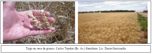 Por otra parte se han comenzado a trillar los primeros cuadros en el Centro y Oeste Bonaerense con altas productividades unitarias a nivel lote, permitiendo esto proyectar un muy buen panorama para esta región a medida que progresa la recolección. La proximidad de la cosechas en el núcleo sur Triguero, perfila expectativas de producción muy buenas esperándose rendimientos elevados. Siendo el sudeste y sudoeste bonaerense contribuyentes de un elevado porcentaje del área nacional, el volumen total a nivel país se incrementaría significativamente. En este escenario es probable que el rendimiento nacional supere al más elevado registrado en la campaña agrícola 2007/08 con 28,6qq/ha. La nueva proyección tentativa de la producción se ajusta ahora a 13.000.000 de toneladas, 300 adicionales a la anterior previsión de 12,7 millones. De confirmarse este valor, el volumen de la zafra actual sería un 39,2% mayor a la precedente.