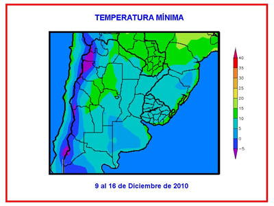 Perspectiva agroclimática nacional del 9 al 16 de diciembre de 2010: fuerte oscilación térmica y precipitaciones variables y localizadas