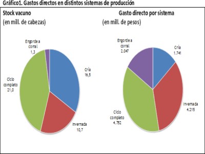 Por último, para los 21 millones de animales que corresponden al sistema ciclo completo (se desarrollan las actividades de cría e invernada en forma conjunta), se estima un gasto directo de $4.752 millones.