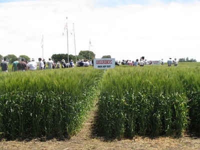 A campo, se vieron parcelas sembradas con SY 100 –de ciclo intermedio y de excelente comportamiento frente a mancha de la hoja producida por septoria; además del SY 200, que sobresale por su calidad industrial.