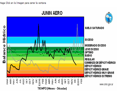 En la zona de Junín, las precipitaciones registradas han sido inferiores a lo normal y a la evapotraspiración, continuando el secamiento de los suelos, siendo las condiciones hídricas deficitarias.