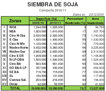 A pesar de ello aún se mantiene la posibilidad de extender la siembra durante enero en v arias de estas regiones, no obstante la superficie nacional prevista para la presente campaña registra un recorte levemente superior al 1% respecto a nuestra anterior publicación (-200.000 has). De esta forma, el avance de siembra alcanzó a cubrir de tan solo un 74,7% sobre una superficie ahora estimada en 18.500.000 has.