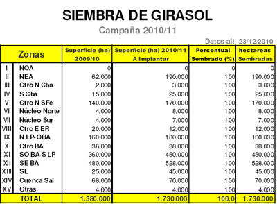 Los nacimientos han sido muy parejos, pudiéndose apreciar hoy plantíos de buen porte. Hacia el sur de La Pampa y sudoeste de Buenos Aires la situación es diferente, donde el cultivo tuvo un buen comienzo con suficiente humedad disponible, pero la ausencia de lluvias posterior complicó el panorama del cultivo.