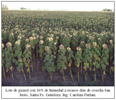 Prima aquí también el miedo al ataque de las aves. En Formosa quedan pocos cuadros por recolectar, mientras en la zona de Malabrigo, en el norte Santafecino los cultivos se van “entregando lentamente”. Los primeros trillados entregan buenos rindes (15-24qq/ha) producto de un correcto llenado de las pepitas. Se estima cosecha a pleno en una semana más. Más al sur, en la zona de Llambi Campbell y Santo Domingo, aún sin recolección todavía, se espera una buena producción dado que la sanidad del cultivo fue aceptable, las pérdidas fueron pocas y los daños en los plantíos casi nulos. Similar escenario muestra la zona de San Justo, estimándose el inicio de la cosecha en pocos días más, de la cual se espera muy buenas productividades (por arriba de los 25qq/ha). Bien es cierto que en algunas zonas como en Margarita el vuelco de las plantas es un problema, debido al peso de los capítulos, exceso de humedad y vientos. Se estima que un 2% del área apta ha sido trillada a la fecha, la gran mayoría cosechada en el Chaco y un pequeño porcentaje en el centro norte de Santa Fe. En números absolutos se calcula que con 18qq/ha, el volumen en chacra producido superaría las 60 mil toneladas.