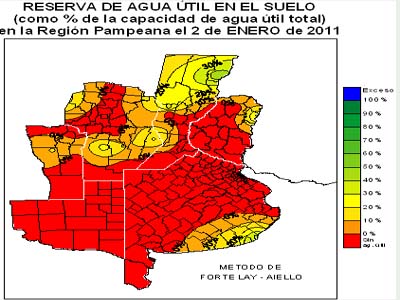 Considerar en sequía absoluta las áreas con 0% de agua útil, en sequía condicional las áreas entre 0 y 50% de agua útil y en humedad óptima las áreas entre 50 y 100% de agua útil.