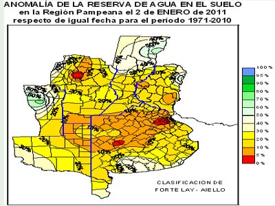 Anomalía de la Reserva de agua en el suelo respecto de igual fecha para el período 1966-2005
