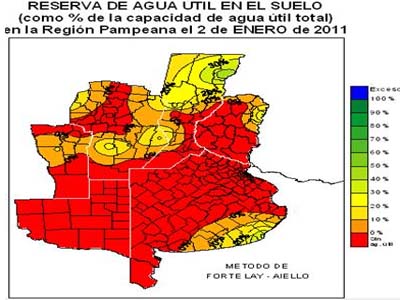 En el comienzo del mes de Enero, la falta de humedad en el suelo en prácticamente toda la región Pampeana era crítica, como se puede ver en la figura 1, tras una serie de días de temperaturas muy elevadas. El cambio llegó a partir del día 4. Lluvias muy importantes llegaron al sudoeste de Buenos Aires y este de La Pampa trayendo alivio para el agro y cambiando un panorama que se complicaba cada vez más. La formación de un sistema de baja presión sobre la zona fue el responsable de lluvias de hasta 270mm en escasas 48hs. en la zona de Sierra de la Ventana lo que provocó grandes trastornos a la población.