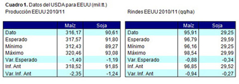 Revisando las cifras del USDA tomemos primero los datos para EEUU, que se pueden observar en el cuadro 1.