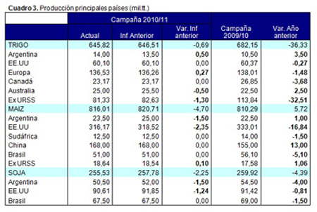 Pasando al frente internacional, en este informe también se dieron cambios en varios países del mundo para cada producto, los que se muestran en el cuadro 3.